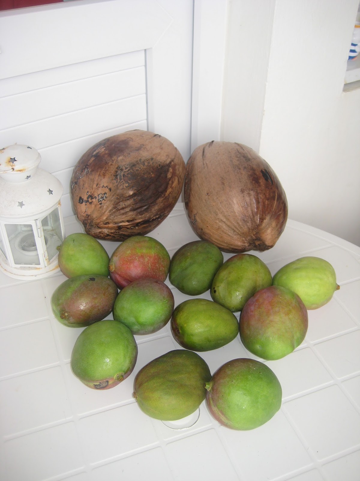 Comme on dit c'est en forgeant qu'on devient forgeron cette année je n'ai pas fait la même erreur en cueillant uniquement des mangues Julie, elles sont plus grosses et ont une petite forme de "haricot". Les mangos sont donc plus petites et se présentent un peu en grappe dans l'arbre.
